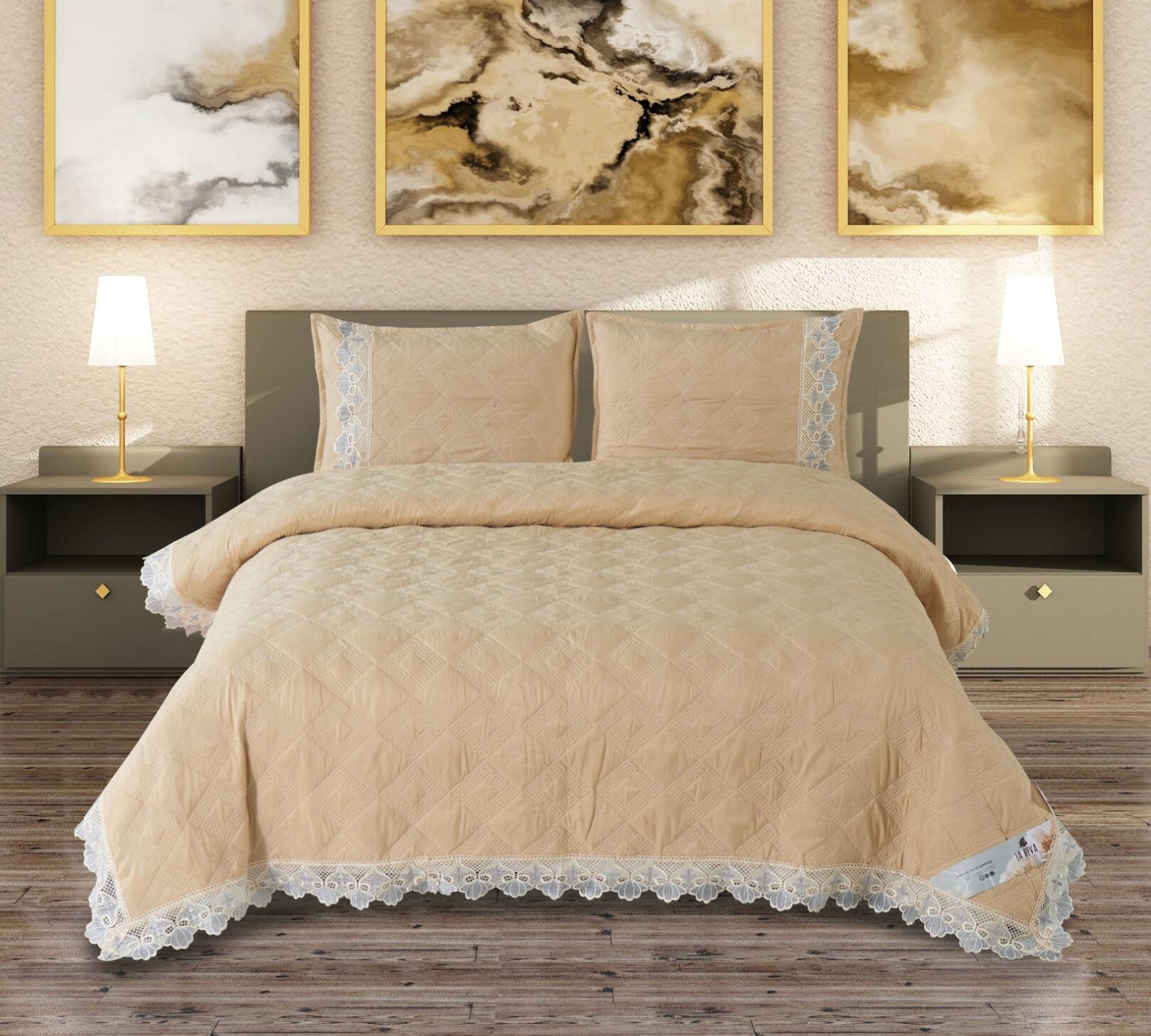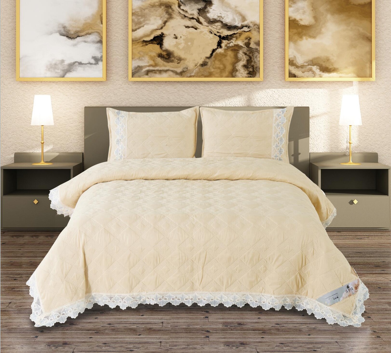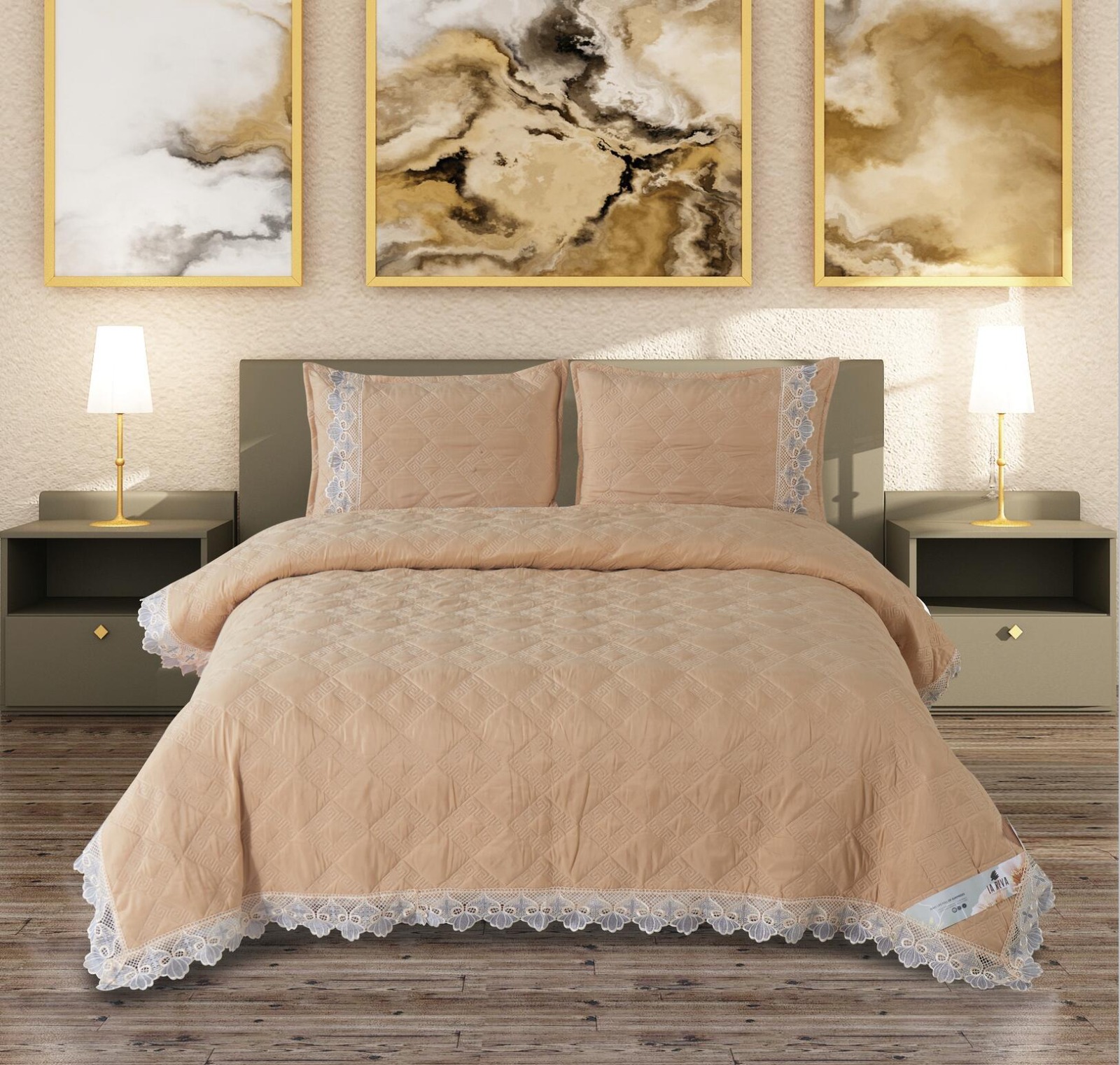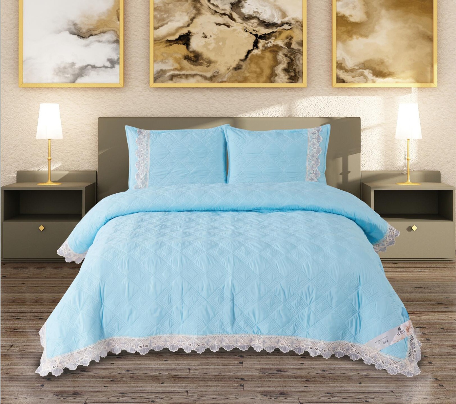 Made from soft, breathable, and durable material, this bedcover ensures a smooth touch and easy maintenance. Its lightweight design makes it convenient for everyday use, while the strong stitching guarantees extended durability. Perfect for both casual and special settings, the Noory Bed Bedcover adds a sophisticated charm to your décor.